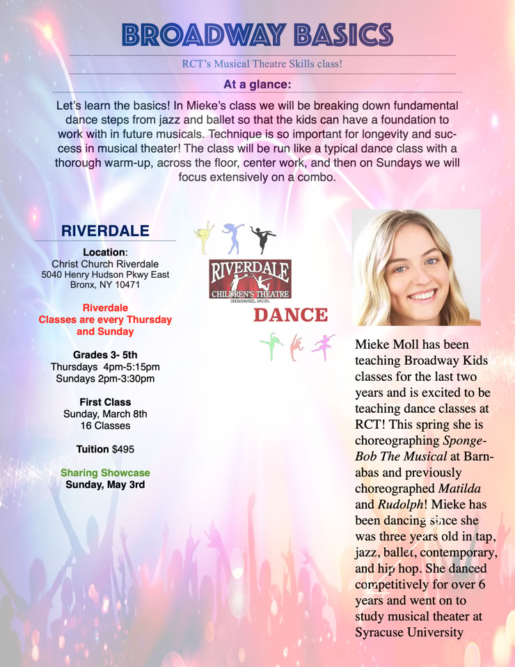 Our instructional classes are a great way for kids to explore the basics of musical theatre. RCT offers different classes from time to time to add to our overall program offerings.